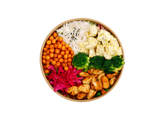150 Gram tavuk akdeniz yeşillik mor lahana haşlanmış brokoli haşlanmış nohut patates salatası basmati pirinç