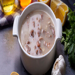 Roka, turşu biberi, limon, sarımsak, acı sos, sirke ile