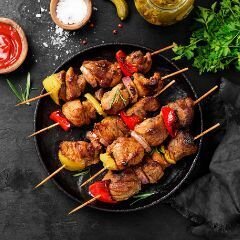 Kuşbaşı Şiş (90 gr.) + Adana Kebap (90 gr.) + Izgara Köfte (90 gr.) + Tavuk Şiş (100 gr.) + Ciğer (90 gr.) + Çiğ Köfte + Acılı Ezme (150 gr.) + Salata + Coca-Cola (1 L.)