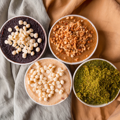 Sütlü tatları sevenler için rüya gibi bir ikili: bir yanda klasik kavrulmuş lezzet, diğer yanda beyaz çikolatanın ipeksi tadı. Bu iki farklı lezzet, üzerine serpiştirilen tahin ve yer fıstığı ile servis edilir. (140 - 170 gr)