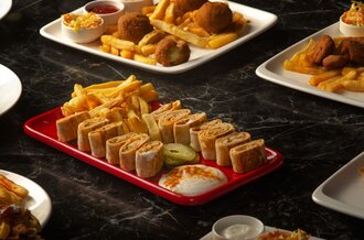 130 gr. tavuk döner, patates kızartması, salatalık turşusu, mayonez, özel sos, kızarmış lavaş