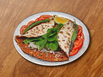 (120 gr.) Dana kuzu kıyma, yeşil biber, domates, maydanoz, isteğe göre soğan