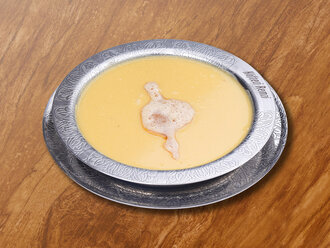 Dana kelle, kemik suyu, tuz. Kaşarlı pide ile