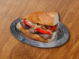 (140 gr.) Dana kuzu kıyma, yeşil biber, domates, soğan, maydanoz, kaşar peyniri