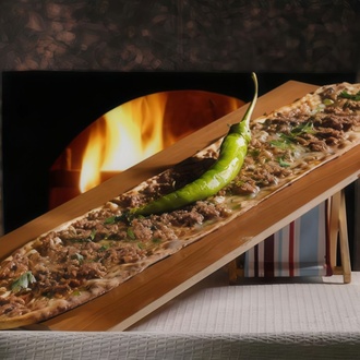 Kuzu şiş, piliç şiş, kanat, domatesli kebap, fırın kebabı, etli ekmek, Antep ezme, çiğ köfte, salata ile