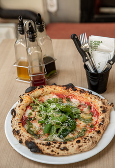 Urla domates sos, suda mozzerella (fior di latte), istiridye mantarı, kestane mantarı, taze fesleğen, sızma zeytinyağı