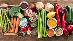 Tofu, domates sos (sarımsak içerir), kabak, patates, mantar, kapya biber ile