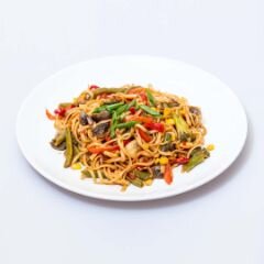 Tavuk eti, yeşilbiber, kırmızıbiber, mantar, yeşilsoğan, havuç, soslar, baharatlar