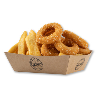 Ev yapımı burger ekmeğine; 130 gr. 2 adet ev yapımı burger köftesi, burger sos, füme kaburga, BBQ sos, cheddar peyniri, ıceberg, karamelize soğan