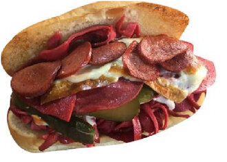 Pastırma, sosis, salam, sucuk, kaşar peynir, ketçap, mayonez, turşu