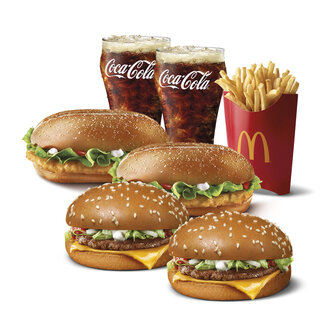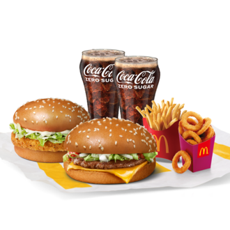 Double McChicken® – Cheeseburger – Orta Patates – 8’li Soğan Halkası – 2 Orta İçecek – 3 Ücretsiz Sos )