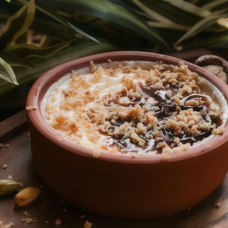 Kaymak ve toz fıstık ile