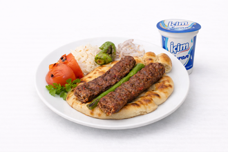 Adana veya Urfa dürüm (130 gr.), ayran (20 cl.), salata, ezme ve acı biber ile servis edilir.