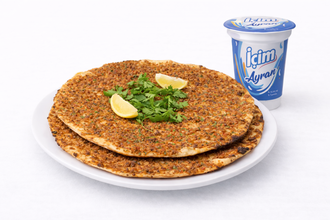 10 adet lahmacun, 2 adet litrelik ayran, maydanoz, limon, ezme, sumaklı soğan ve acı biber ile servis edilir. (Acılı ve acısız adetini lütfen not olarak belirtiniz.)