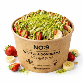 El yapımı özel reçete waffle hamuru dilimlenerek bol sütlü, beyaz çikolatalı ve antep fıstığı soslu çilekli ve muzlu fındık ve fıstık parçacıkları ile servis edilir.