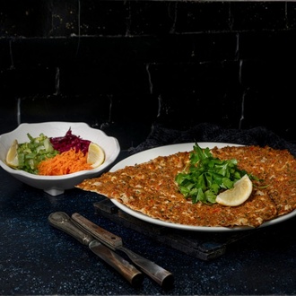 2 Adet Lahmacun + Seçtiğin İçecek (330 ml) ile hazırlanır. Salata ve maydonoz ile servis edilir.