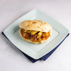 El açması 1,5 lavaş içerisine tavuk döner (120 gr), bbq sos, patates kızartması, salatalık turşusu, domates, yeşillik ve sarımsaklı mayonez ile
