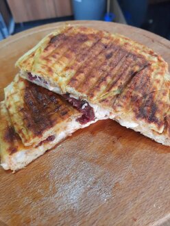 Bazlama Ekmek Arası Kavurmalı Kaşarlı Tost