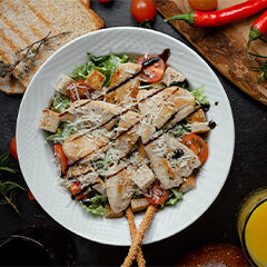 Izgara tavuk, Akdeniz yeşillikleri, kruton, parmesan peyniri, Sezar sos