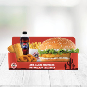 Chicken Burger + Küçük Boy Patates Kızartması + 4’lü Soğan Halkası + 2’li Chicken Tenders + Pepsi Zero Sugar (330 ml.)