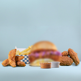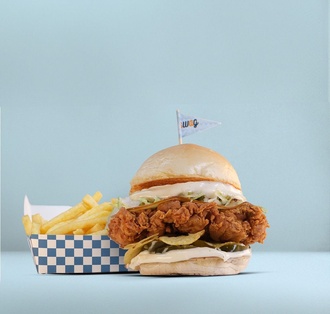 Seçeceğiniz Burger Yanında 3 Adet Basic Wings (35 - 45 gr./adet), 3 Adet Tenders (50 - 60 gr./adet), Ranch Sos, Kıtır Cips ve Patates Kızartması.