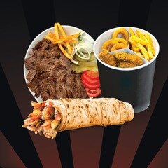Hatay usulü tavuk dürüm (80 g) (2 adet), ayran (170 ml) (2 adet) ve patates kızartması (adet) ile