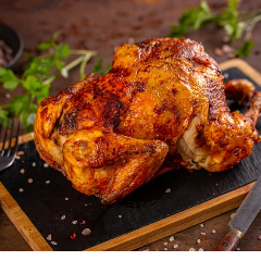 Kızarmış tam tavuk olarak verilir. Çiğ ağırlık takribi 1,3 kg dır.