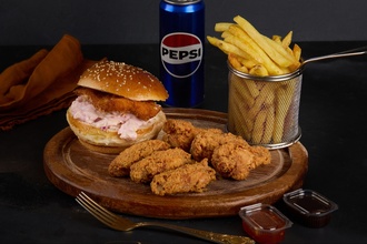 Texas burger (3 adet), kanat (3 adet), but (3 adet), tenders (3 adet), mozarella sticks (3 adet), soğan halkası (3 adet), patates kızartması , özel sos (6 adet) ve içecek (1 L) ile