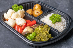 Kabak, patlıcan, havuç, kapya biber, karabiber, 100 gr. buharda haşlama tavuk göğüs. Kızarmış ekmek ile