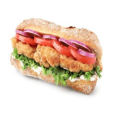 Közlenmiş domates sosu, tavuk, cheddar peyniri, çıtır soğan, acı tatlı mayonez sos