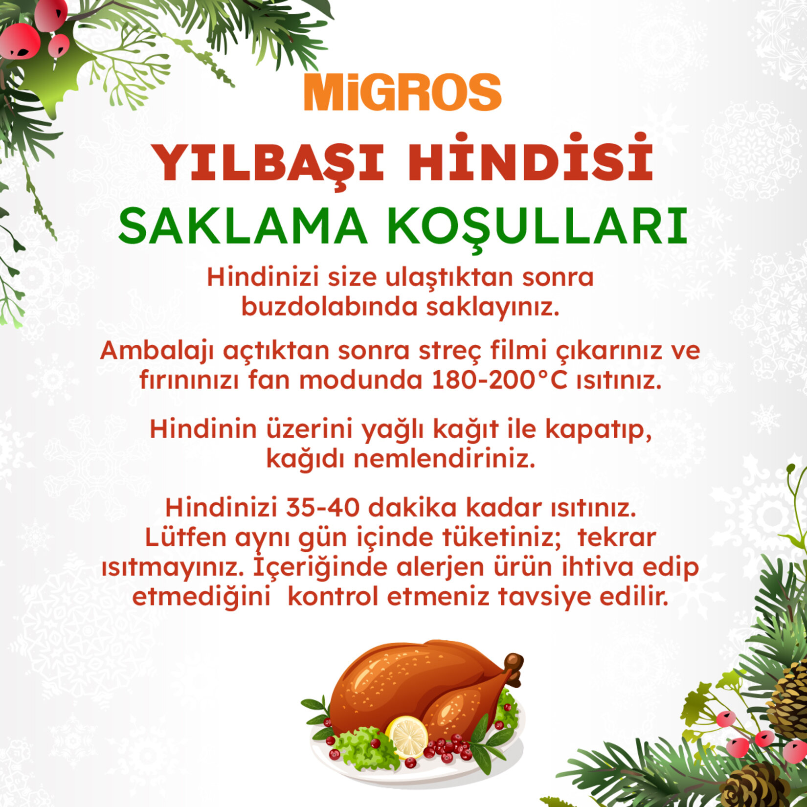 - Yılbaşı sofralarınız için Hindi menülerini 26 Kasım -29 Aralık 2024 tarihleri arasında (29 Aralık saat 13:00'a kadar) Migros Sanal Market üzerinden sipariş verebilirsiniz.